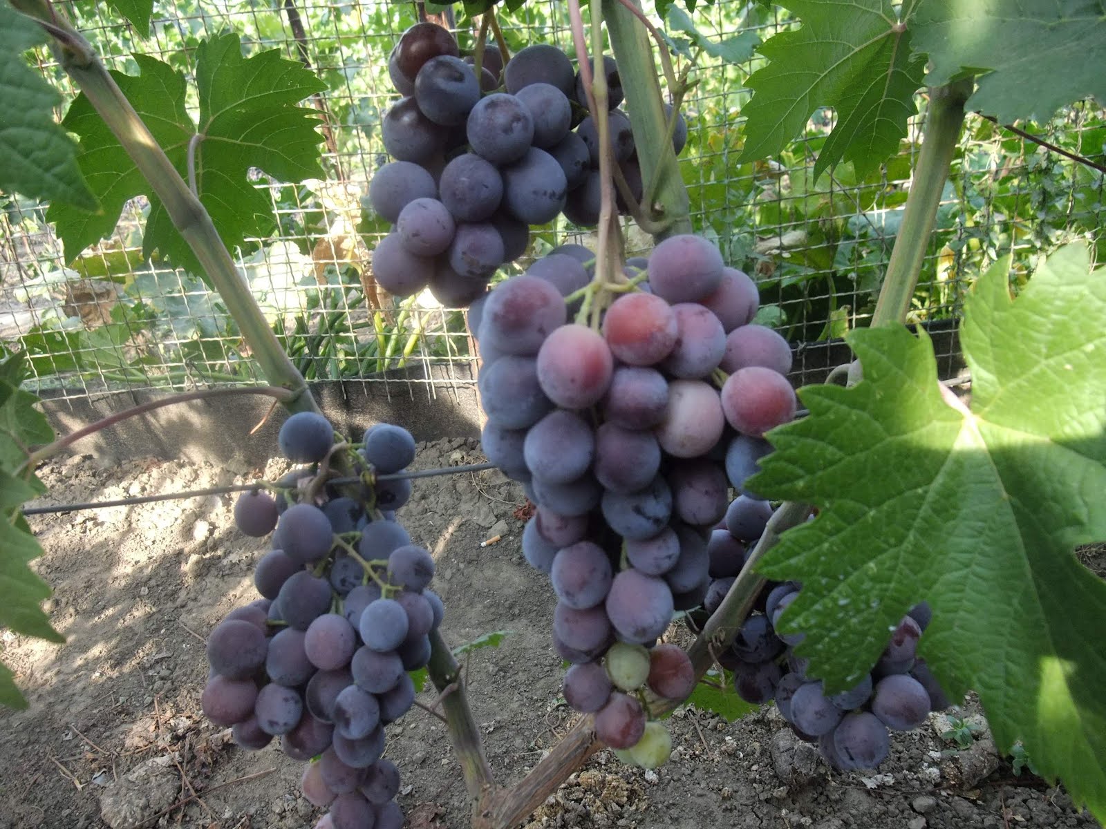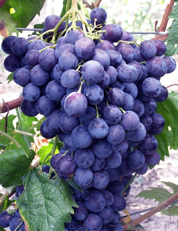 Грозди крупные, 700-1000 (2000) г, нарядная, ширококонической формы, средней плотности и плотная, полноватая. Ягоды округлые, темно-фиолетовые, почти черные, весом 10-15 г и более, покрыты восковым налетом. Мякоть сочная, простого гармоничного вкуса. Кожица съедаемая. Ягоды не растрескиваются. Не горошит. Транспортабельность хорошая. Урожайность высокая.